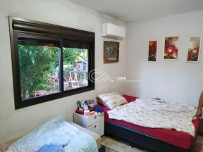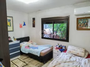 Toda em alvenaria, piso em cerâmica, abertura frontal de vidro e madeira, bem como aberturas internas.