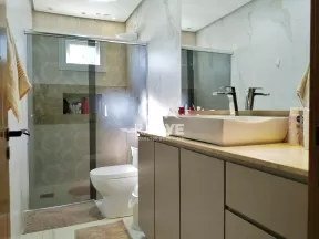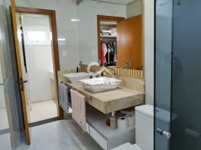 O diferencial desse imóvel certamente está no seu acabamento de primeiríssima linha. Toda com porcelanato polido, rebaixamento de gesso, portas maciças de madeira nobre e janelas com persianas automatizadas (ativação por controle remoto).