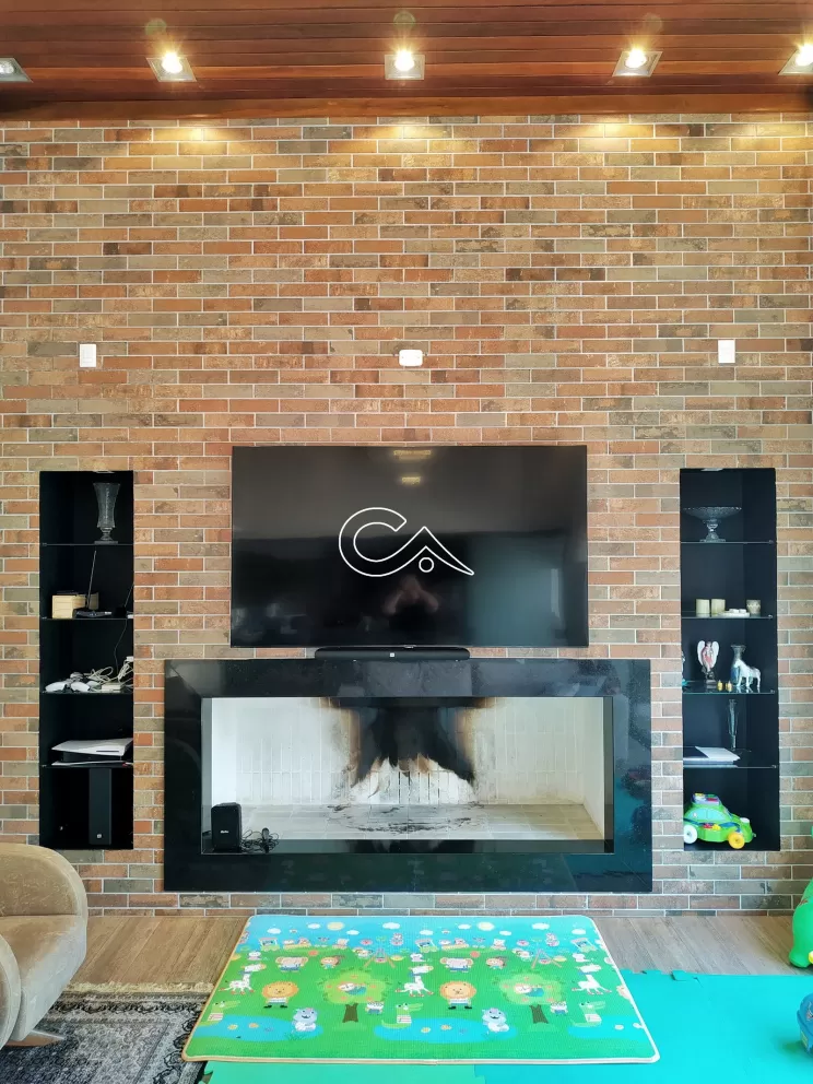 🛋️ Sala de Estar com Lareira Revestida em Granito